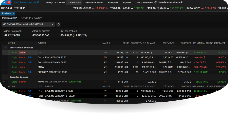 Options à branches multiplesNégociez des options à branches multiples directement sur BMO Investisseur actif. Gagnez du temps en exécutant efficacement des stratégies complexes.